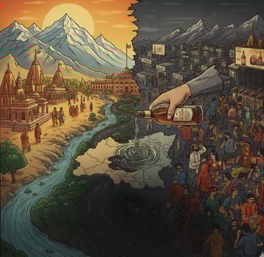 सरकारें जनता से धर्म और स्वास्थ्य की बातें करती हैं, लेकिन व्यवहार में शराब दुकानों के खुलने में हर बाधा को दूर करने का प्रयास करती हैं। 25 साल में आबकारी राजस्व में अभूतपूर्व वृद्धि हुई है - 2000-01 में यह मात्र 17.54 करोड़ रुपये थी जो 2024-25 में बढ़कर 4,439 करोड़ रुपये हो गई है, और 2025-26 में इसका लक्ष्य 5,060 करोड़ रुपये रखा गया है। यह लगभग 288 गुना की वृद्धि है - एक ऐसी वृद्धि जो किसी संतुलित विकास की कहानी नहीं बल्कि अर्थलोभ की कहानी बताती है।